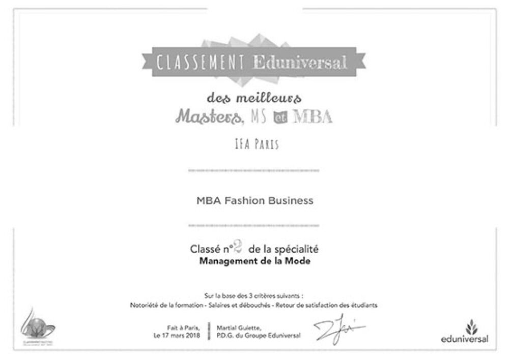 IFA Paris MBA Sıralama Sertifikası