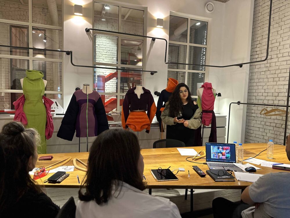 Mezun tasarım öğrencimiz Yasmine Sıdki jüri sunumunda Yıllarca süren yoğun çalışmanın ve özverinin sonucu olarak, IFA Paris İstanbul'da mezun olan öğrenciler, koleksiyonlarını oluşturmak için kalplerini ve ruhlarını ortaya koydular. Kavramsallaştırmadan uygulamaya kadar, bu gelişmekte olan tasarımcılar, tasarıma derinlik ve karmaşıklık katan incelikli ve girift detayların özünü yakalayarak, kapsayıcı "nüans" temasını aynı anda benimserken, kendi bireysel vizyonlarını somutlaştıran titizlikle hazırlanmış giysilere sahipler. Mezun olan öğrenciler, dokuların etkileşimini keşfetmekten beklenmedik renk kombinasyonlarını denemeye kadar, bireysel yolculuklarını ve isteklerini yansıtan moda ifadeleri yaratmak için sanatsal dünyalarının derinliklerine indiler.